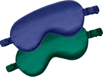 Silk Sleep Mask, 100% Silk Eye Mask for Sleeping with Elastic Strap, Soft Blackout Blindfold Eye Cover Eyeshade for Women Men Travel 2 Pack (Navy & Dark Green)