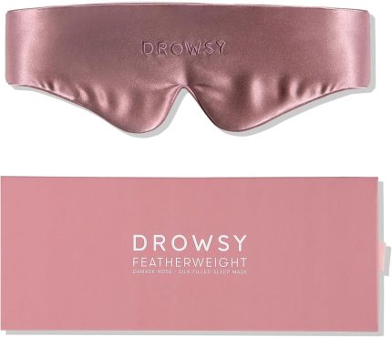 Drowsy Featherweight Silk Sleep Mask – Luxury Blackout Eye Mask for Sleeping & Travel, 100% Mulberry Silk, Lightweight Comfort, Adjustable Strap, Protects Skin & Hair – Damask Rose