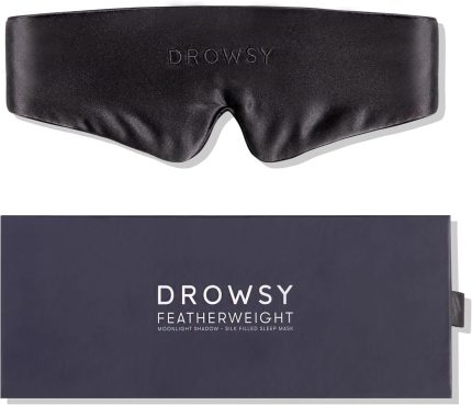 Drowsy Featherweight Silk Sleep Mask – Luxury Blackout Eye Mask for Sleeping & Travel, 100% Mulberry Silk, Lightweight Comfort, Adjustable Strap, Protects Skin & Hair – Moonlight Shadow