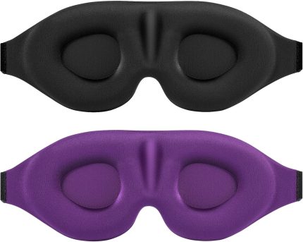 Sleep Eye Mask for Men Women 2 Pack 3D Contoured Cup Sleeping Mask & Blindfold, Concave Molded Night Sleep Mask, Block Out Light, Soft Comfort Eye Shade Cover for Travel Yoga Nap, Purple & Black