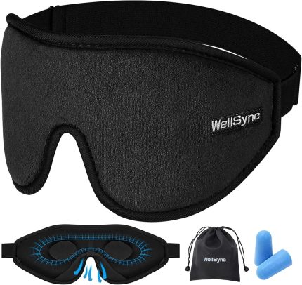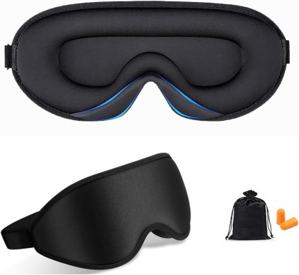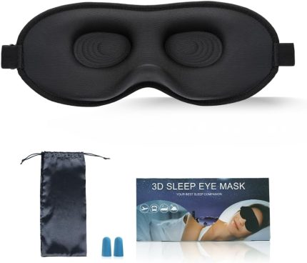 Sleep Eye Mask for Men Women,Zero Pressure 3D Blackout Eye Mask for Sleeping,Eye Covers with Adjustable Strap,Soft Breathable Travel Sleep Mask for Airplane,Includes Ear Plugs(Black)