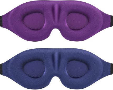 Sleep Eye Mask for Men Women 2 Pack 3D Contoured Cup Sleeping Mask & Blindfold, Concave Molded Night Sleep Mask, Block Out Light, Soft Comfort Eye Shade Cover for Travel Yoga Nap, Blue & Purple