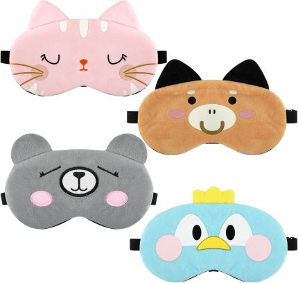 Sleep Mask for Kids 4 Pieces Cute Animal Eye Mask Soft Sleeping Eye Shade Night Sleeping Eye Mask Adjustable Elastic Sleeping Mask for Women Children Girls and Adult