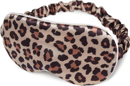 Funky Junque Adjustable Satin Sleep Mask for Women, Silk Filled Eye Mask, Ultra Lightweight, Blocks Light, for Travel, Meditation – Leopard