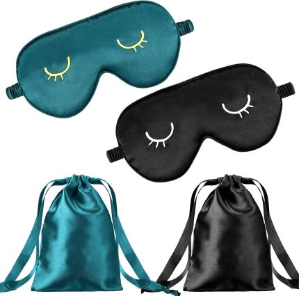 Geyoga 2 Pcs Cute Sleep Eye Masks for Adult Silk Sleep Eye Cover Cute Lightweight Adjustable Eyeshade Mask Satin Night Eyeshade Covers with 2 Pcs Storage Bag(Adult, Green, Black)