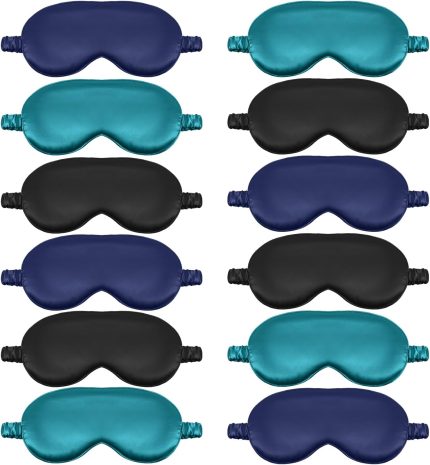 12 Pcs Silk Sleep Masks Soft Satin Eye Masks with Adjustable Elastic Strap for Sleeping Comfortable Blindfold Eyeshade for Men Women Nap Night Travel Gifts (Black, Dark Green, Navy Blue)