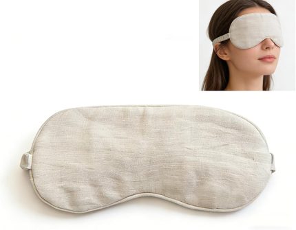 100% Pure Linen Sleep Mask Blackout Eye Mask for Sleeping, Eye Cover with Adjustable Strap – Organic Cotton Core Linen Eyes Mask Breathable for Travel – Gift for Women Men (raw Hemp Color)