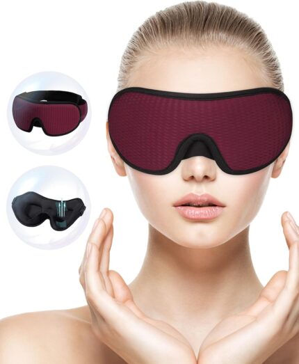 Sleeping Mask for Men Women, MrsJeggy 3D Eye Mask for Sleeping, Heavy Light Blocking Blindfold Concaved Model with Soft Comfort Strap for Good Dream Anytime.(Claret-red)