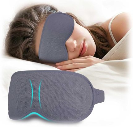 Halenmou 3D Sleep Mask for Side Sleepers Men & Women – Zero Pressure Eye Mask, Blackout Sleeping Mask with Soft Lycra Cotton, Light Blocking Blindfold for Travel, Nap & Night Sleep (Gray)