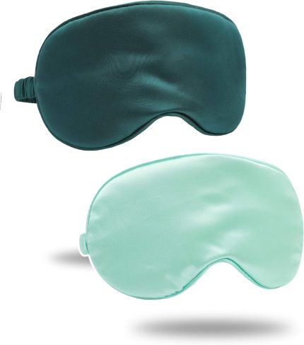 ZLYC Silk Satin Sleep Mask with Elastic Strap Travel Eye Sleeping Blindfold for Women Men (Dark Green, Light Green)