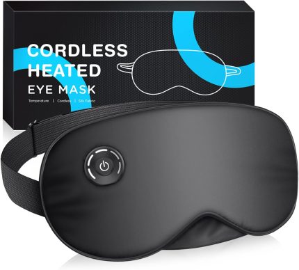 Heated Eye Mask for Dry Eyes, Silk Sleep Mask with 4 Heat & Timer Settings, Cordless USB Rechargeable Eye Warmer for Women Men, Light Blocking for Migraine, Travel, Gift