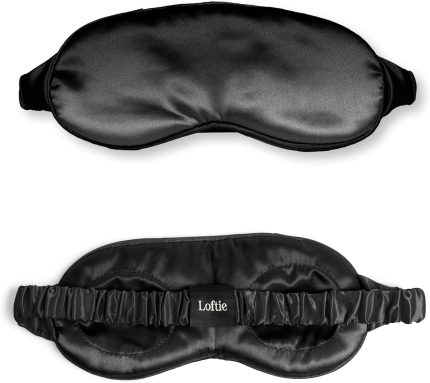 Loftie Silky Sleep Eye Mask – Light Blocking Sleep Mask – Silk Masks for Sleeping – Silky Material, Elastic Band, Low Tension Cups – for All Head Sizes – Travel Pouch Included, Christmas Gift (Black)