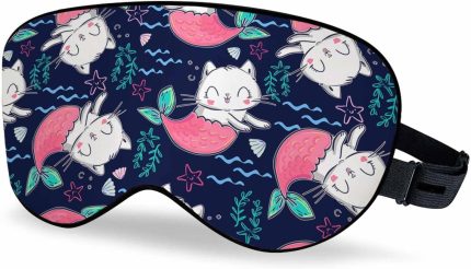 Mermaid Cats Sleep Eye Mask Cute Kitten Men Women Sleep Mask with Adjustable Strap Eye Cover Eye Shade for Travel, Nap,Meditation