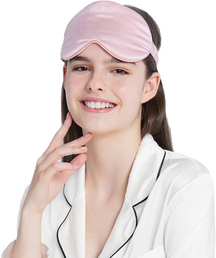 Mommesilk Luxury Silk Sleep Mask 100% 22 Momme Mulberry Silk Eye Mask with Elastic Strap/Anti-Aging/Skin Care/Multi Colors/Ultra Soft, Light & Comfy/Travel, Nap/Blindfold, Rosy Pink
