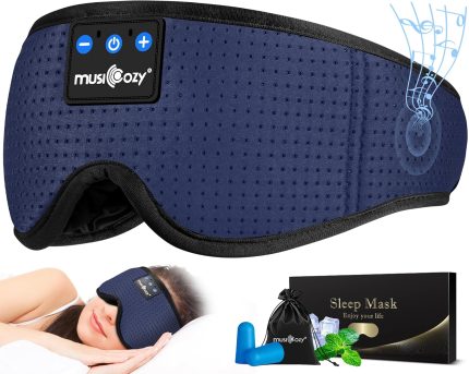 MUSICOZY Sleep Headphones Bluetooth 5.4 Headband Sleeping Eye Mask for Mom Women Men Wireless Music Earbuds Earphones for Side Sleepers Built-in HD Speakers Cool Gadgets Unique Gifts (Navy Blue)
