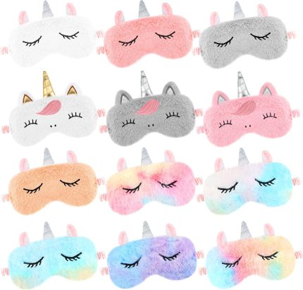 Newcotte 12 Pcs Unicorn Sleep Mask Rainbow Unicorn Plush Eye Covers Soft Eye Mask for Sleeping Bulk Funny Sleeping Mask Sleep Blindfold for Women Night Party Travel Nap Lunch Break