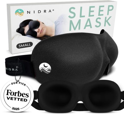 Nidra Contoured Sleep Mask for Side Sleepers – Zero Pressure Fit, Light Blocking Eye Shade for Sleeping & Travel – Black, Small Size
