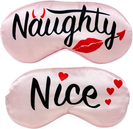 Naughty or Nice Funny Sleep Mask for Women, Ultra Soft Reversible Sleeping Mask with Adjustable Strap. Wedding Gift for Bride, Bridal Shower, Romantic Anniversary Present, Christmas Stocking Stuffer