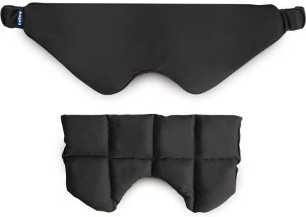 Nellow Weighted Microwave Activated Warm Eye Compress for Dry Eyes, Blepharitis & Stye Treatment – Black Satin Sleep Mask with Hook and Loop Closure
