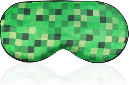 Pixel Themed Sleep Mask, Blackout Green Video Game Theme Eye Mask for Sleeping with Adjustable Elastic Strap Soft & Breathable Eye Cover for Boys Kids Men Home Office Travel Party Accessories