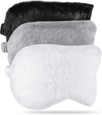 Plush Eye Mask 3 Pcs Sleeping Blindfold Sleeping Mask Sleep Mask Comfortable Plush Sleepover Mask Soft Furry Eye Cover for Sleepover Gift Birthday Party Favors(Black, White, Gray)