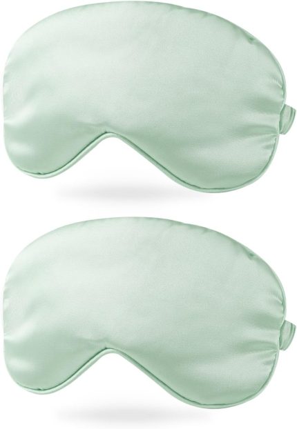 PATIKIL Silk Sleep Mask, 2 Pack Soft Satin Eye Protective Mask Blackout Eye Cover with Elastic Straps for Side Sleeping Women Men Travel, Light Green