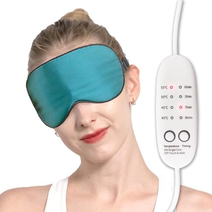 Real Silk Heated Eye Mask, Reusable USB Electric Soft Sleeping Mask with Temperature and Time Control, Comfortable Heating Steam Blindfold for Eyes Relax – Peacock Blue