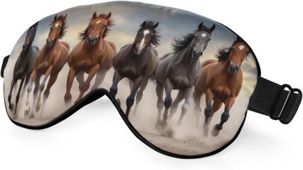 Running Horses Eye Mask Sleeping Mask Landscape Desert Dust Sunset Sky Animal Sleep Masks Silky Soft Eye Cover for Women Men Shading Blindfold for Air Travel Sleeping