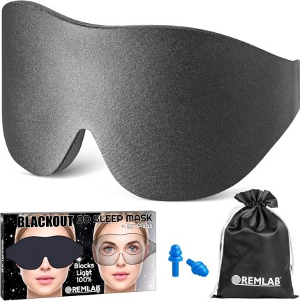 ringchan Complete Blackout 3D Sleep Mask – Contoured & Zero-Pressure Eye Cover for Sleep, Travel & Office Nap – Soft, Hair-Friendly Adjustable Strap – Slate Gray