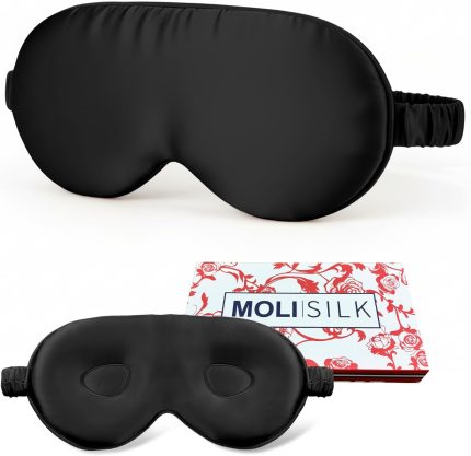 Silk Eye Mask for Sleeping 100% Mulberry Silk Women Men Blindfold,3D Luxury Travel Smooth Elastic Strap Eye Masks Breathable Cooling Soft Night Sleep Work Eyeshade Cover,Black