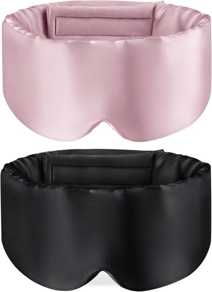 Silk Eye Mask for Sleeping 2 Pack, 100% Natural Silk Sleep Masks for Women Men, Soft Pressureless Cooling Blackout Satin Eye Mask Fits All Heads with Adjustable Strap for Home & Travel