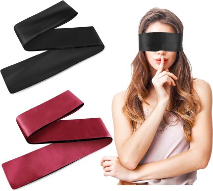 2 Pieces Satin Eye Mask, Soft Sleep Mask Adjustable Eye Cover Blindfold Travel Nap Night Sleep Eye Mask Comfortable Sleeping Blindfold for Women Men Adult Couples (150cm/59inch) (Black+Red)