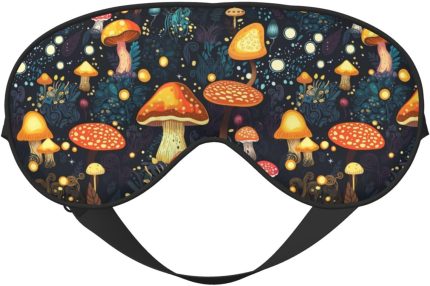 Sleep Eye Mask Mushroom Forest with Lights Sleep Mask for Women Men Comfortable Eye Mask with Adjustable Strap Soft Eye Cover Blindfold for Travel Yoga Nap Shift Work