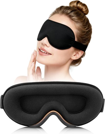 Sleep Mask for Men Women – Eye Masks for Side Sleepers, 3D Contoured Night Blindfold 100% Blockout Pressure-Free, Soft Lightweight Breathable Eye Cover Shade Sleeping for Airplane, Travel, Black