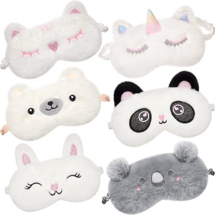6 Pcs Kids Sleep Mask Cute Unicorn Animal Sleeping Eye Cover Funny Soft Plush Blindfold Eyeshade for Women Girls Kids Plane Travel Nap Night Sleeping