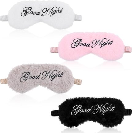 4 Pcs Plush Sleeping Mask Furry Eye Cover Soft Sleeping Blindfold Fluffy Comfortable Eyeshade with Elastic Strap Silky Back for Travel Sleepover Nap Party Supply Girl Women