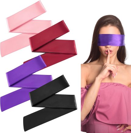 4Pcs Satin Blind Fold for Game, Soft Silk Blackout Blindfold for Adults Couples, 57” V-Shaped Sleeping Eye Mask, Adjustable Eye Shade Cover, Travel Blind Folds for Adult Play Women Men Meditation