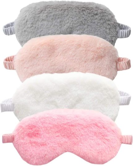 4 Pcs Plush Eye Mask Soft Fluffy Plush Eye Mask Sleep Mask Adjustable for Kids Adult Women