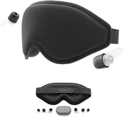 Sleeper Blackout [Sleep Eye Mask & Memory Foam Ear Plugs] Zero Pressure Soft Breathable Comfortable Light Blocking for Side Sleeper Men Women, Adjustable Strap 3D Contoured Night & Travel Blindfold