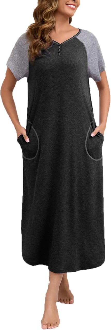 3 Pack Nightshirt for Women V Neck Nightgowns with Pocket Short Sleeve Sleepwear Soft Comfy Sleep Shirts