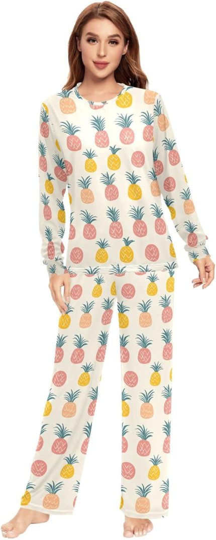 Cute Cartoon Pineapples Women Pajama Sets 2 Piece Comfy Men Sleep Pants Home Outfit for Pjs Couples