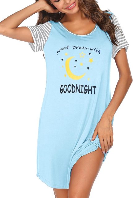 Ekouaer Nightgown For Woman Night Dress Short Sleeve Printed Sleep Shirt With Pocket Sleepwear Soft Blue Moon S