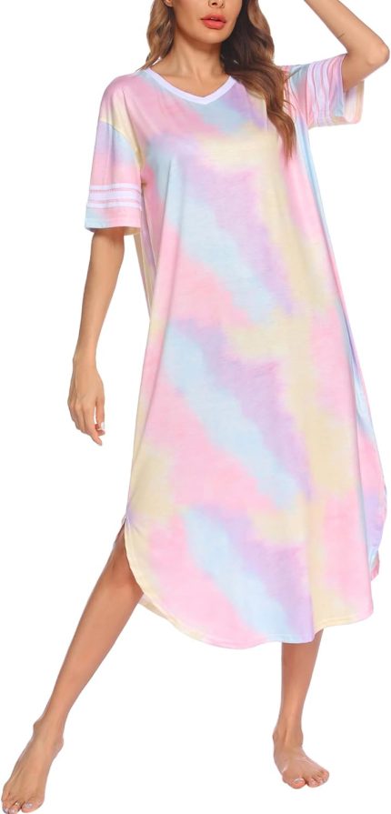 Ekouaer Long Nightgown, Womens V Neck Loungewear Oversized Sleepwear Loose Sleep Dress