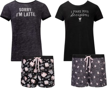 4 Piece: Short Sleeve Top with Shorts Sleep Set – Soft and Cozy Loungewear Pajamas
