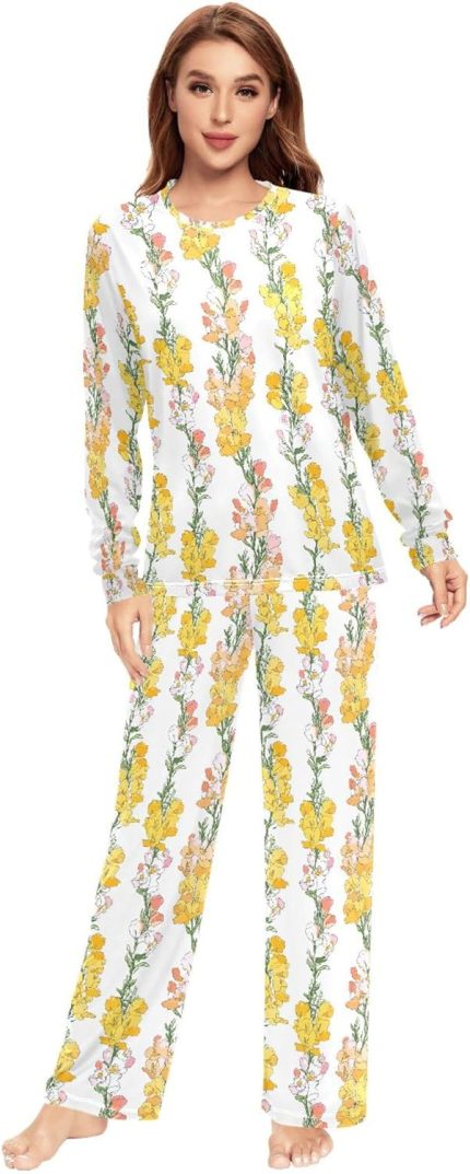 Aesthetic Snapdragon White Pajama Set for Women 2 Piece Cozy Men Sleep Pants Long Sleeve Top & Bottom
