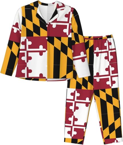 FoRes Flag of Maryland Super-Soft Long Sleeve Pajama Set for Women – Lazy Loose Cardigan for Sleep at Night, Comfortable