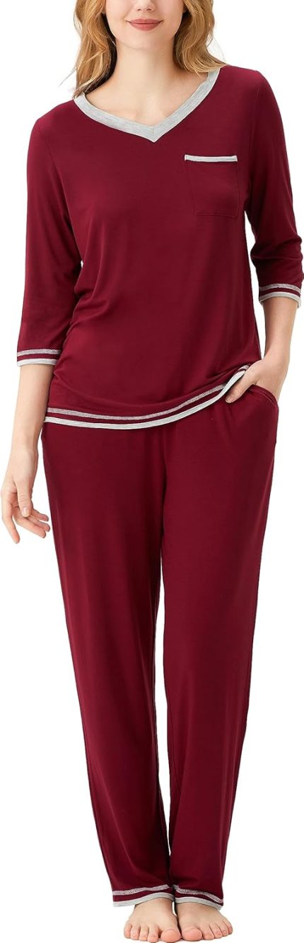 GYS Bamboo Viscose Pajamas for Women 3/4 Sleeve Pajama Set Soft V Neck Sleep Lounge Set Sleepwear
