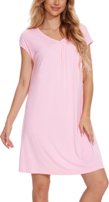 GYS Viscose Nightgowns for Women Short Sleeve Sleep Shirts Soft Pleated Pj Sleep Dress Sleepwear