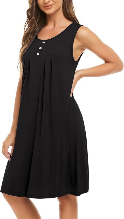 HOCOSIT Women’s Nightgowns Sleeveless Sleep Dress Pleated Comfy Sleepwear Scoopneck Nightwear Loungewear