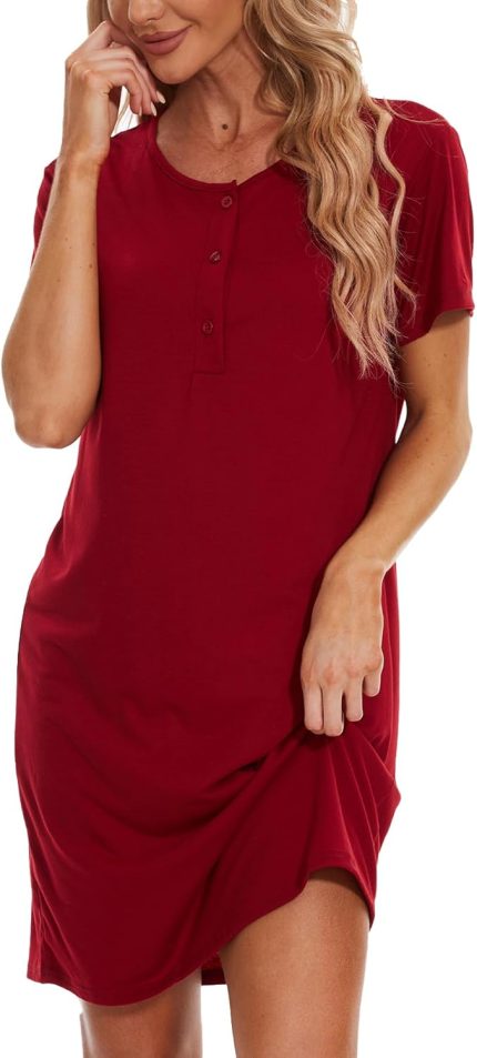 HOTOUCH Sleepwear Womens Soft Nightgown Short Sleeve Sleep Nightdress Scoopneck Sleep Tee With Lace Trim Nightshirt S-XXL